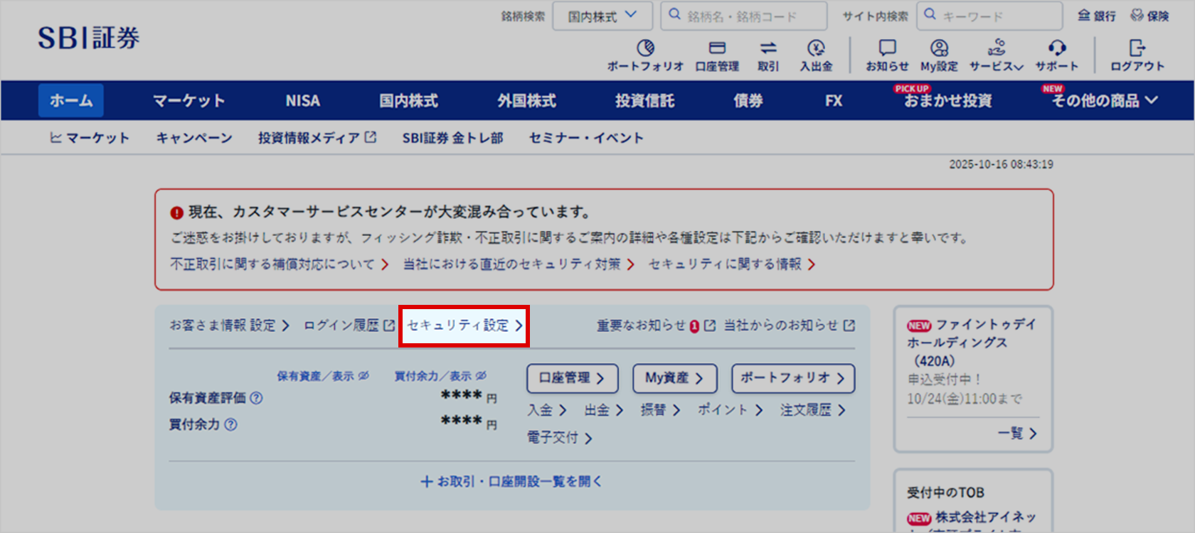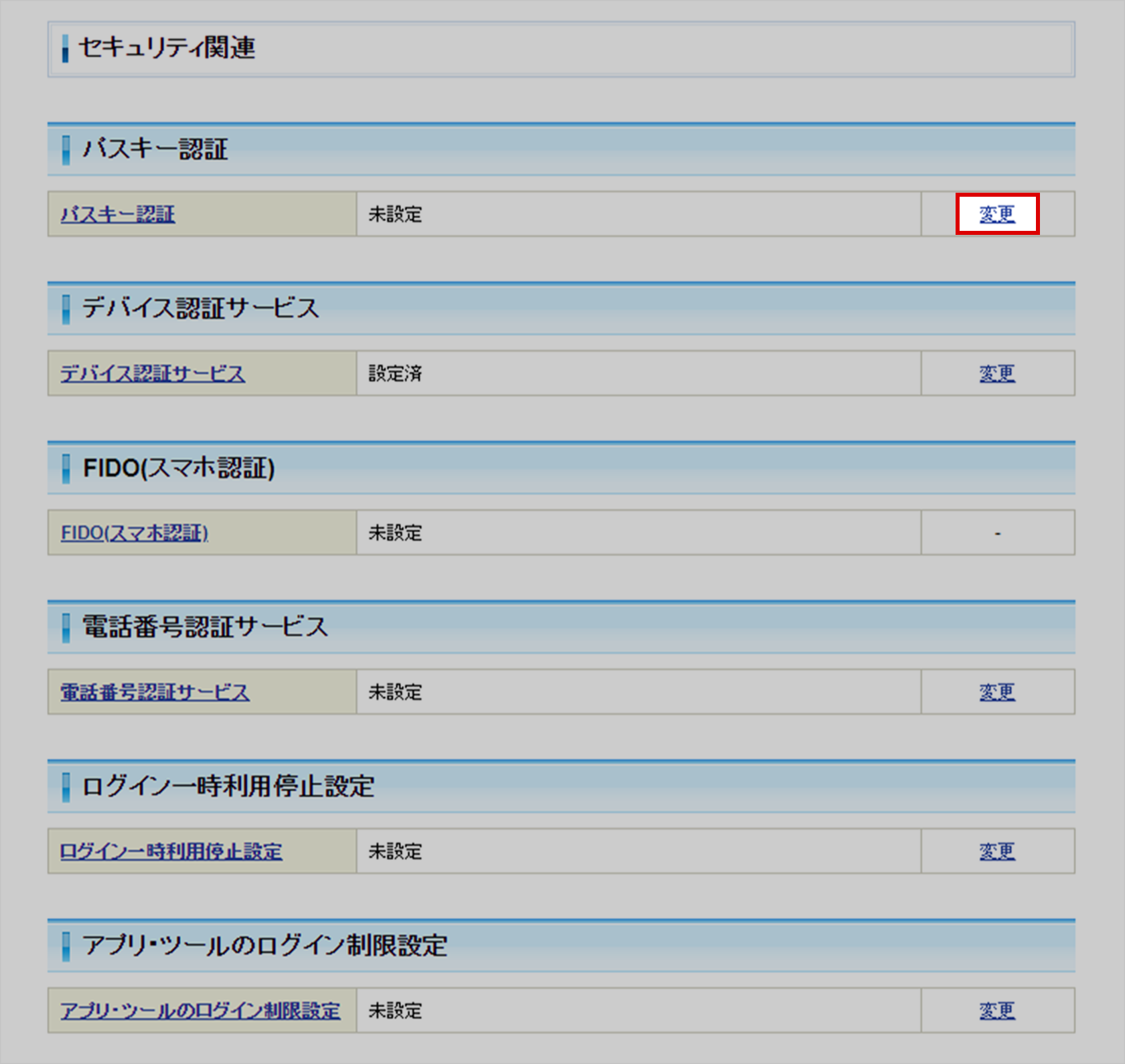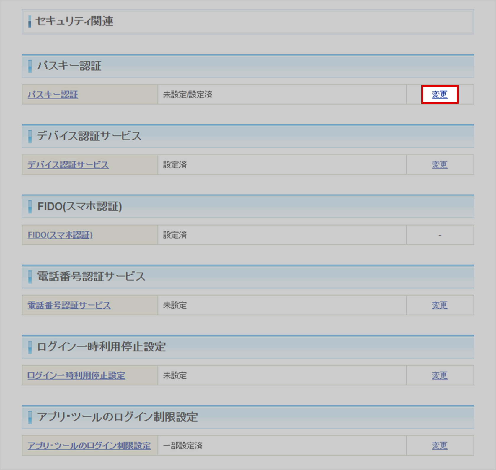パスキー登録状況の確認・解除方法Stepパスキー認証の設定画面を開くログイン後の当社WEBサイトホームの「セキュリティ設定」をクリックしてください。