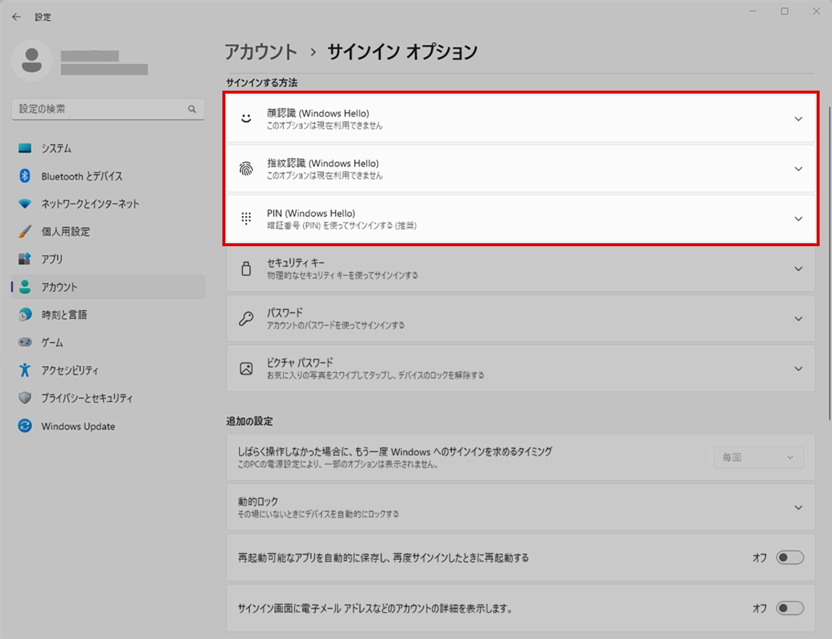 Windows OSの場合のサンプルPC環境のみでパスキー認証を希望される場合、お使いのPCで生体認証、またはPINを利用する設定を行ったうえで再度パスキー登録の操作をお願いします。