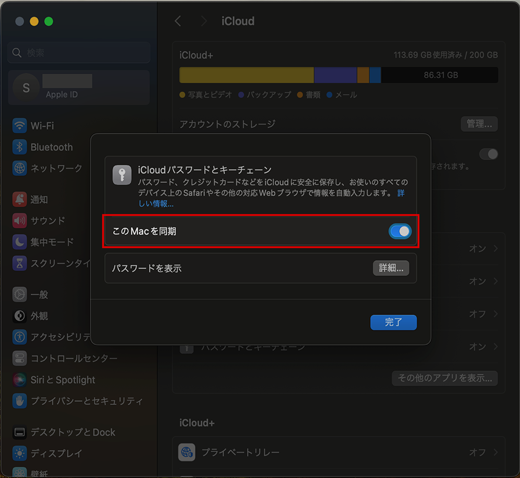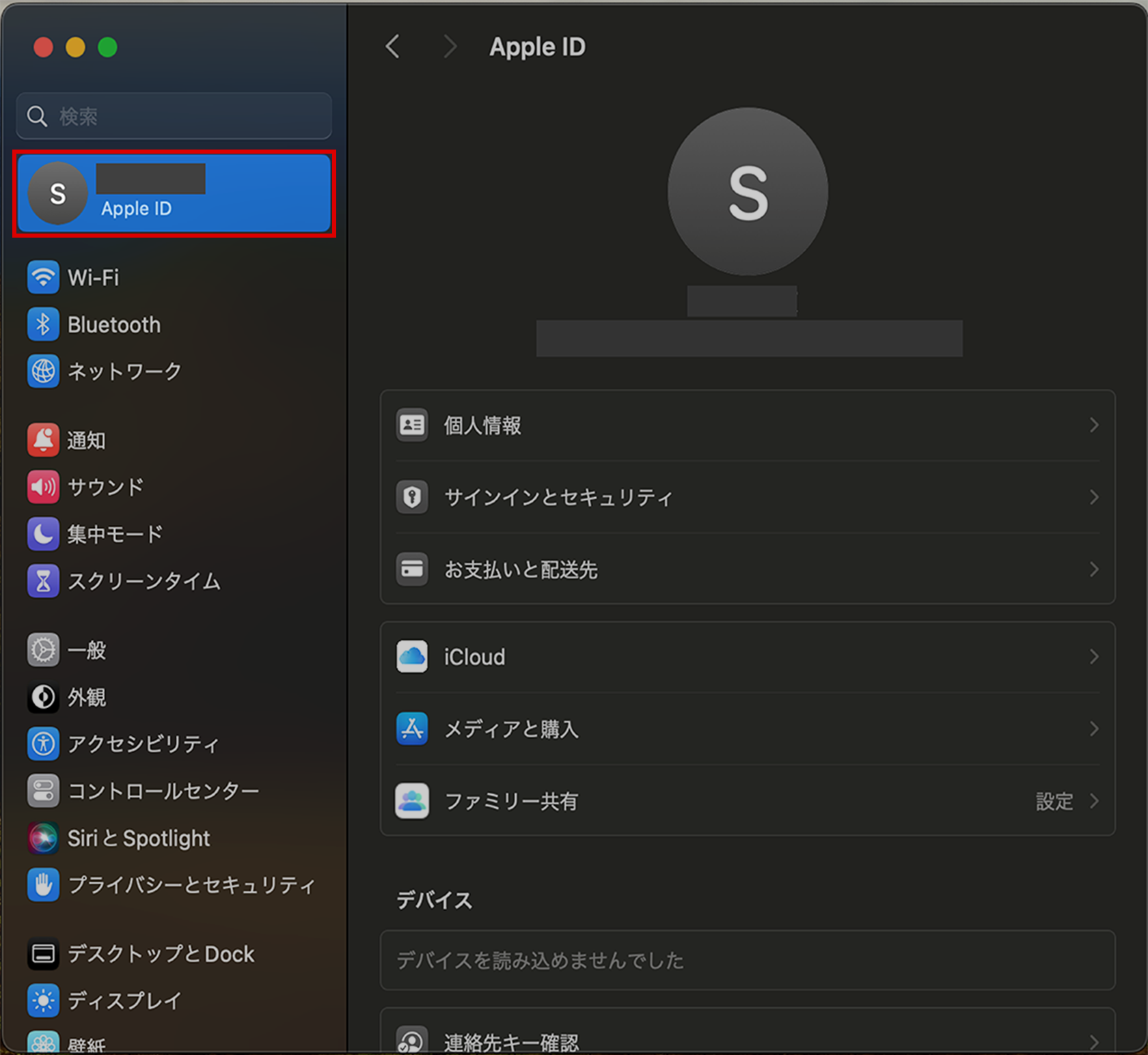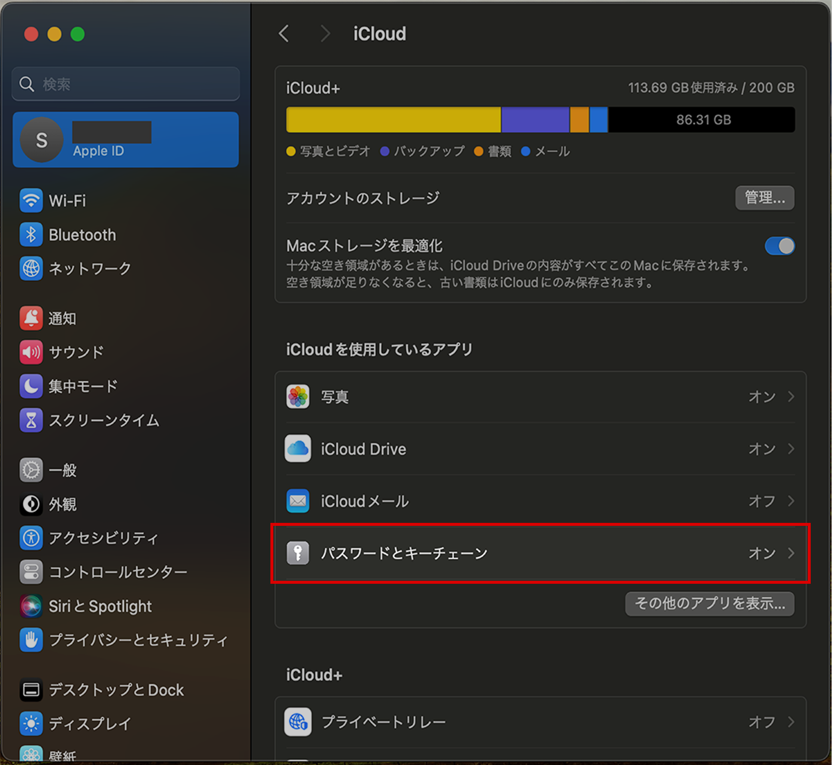 iCloudキーチェーンの設定方法Stepお使いのPCで「設定」からアカウント名・アイコン表示部分を押す
