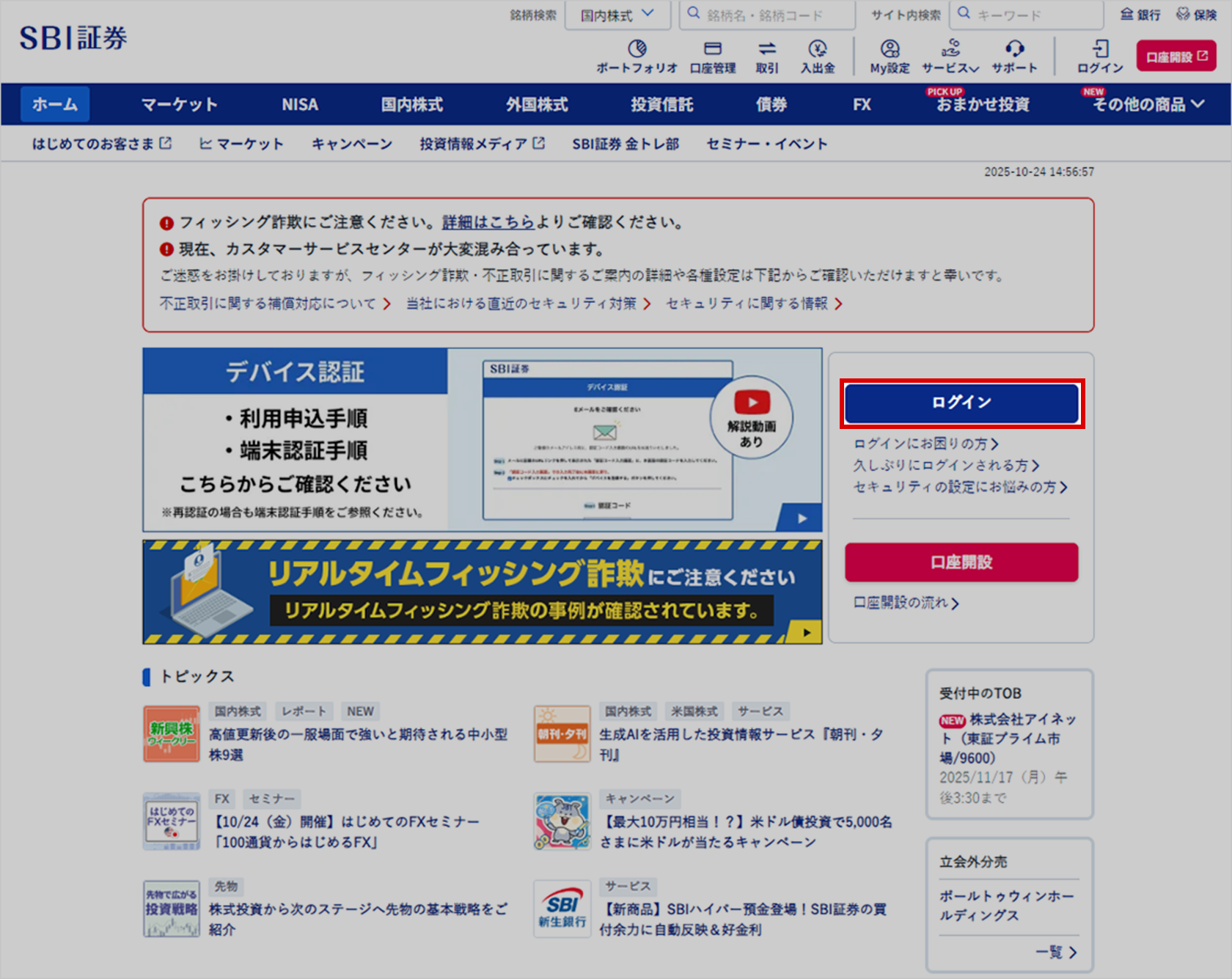 パスキー認証を利用したログイン方法Stepログイン画面を開く当社WEBサイトのトップページの「ログイン」ボタンをクリックしてください。